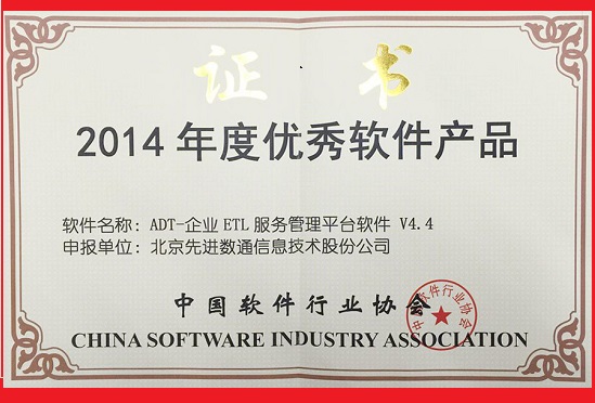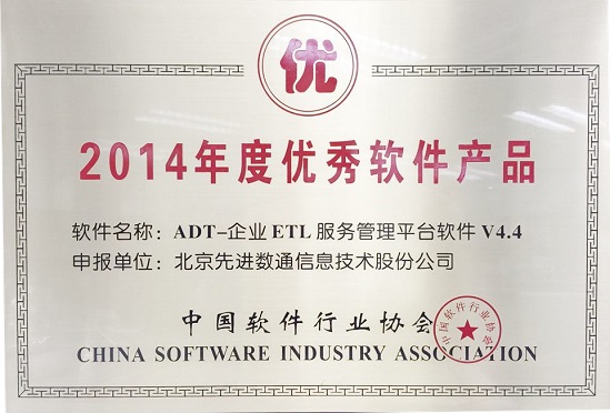 日前,中国软件行业协会发布了2014年度优秀软件产品榜单,乐鱼官网数通自主研发的“ADT-企业ETL服务管理平台软件”成功入围。