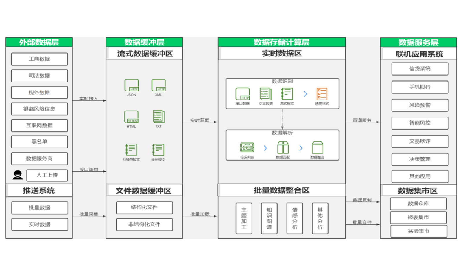 依托于灵活的可视化配置及数据缓存技术,平台具备高效接入新数据源和快速响应的能力。在数据引入阶段,提供统一的源系统管理,兼容不同的接入方式、加密策略,完成对内数据的归集和对外数据的接口治理,构建数据服务目录,实现开箱即用。在数据处理阶段,平台采用热点数据缓存机制,减少重复查询并提高系统处理效率。通过引入内存式数据库,平台能够显著提升数据处理速度,降低对数据库资源的消耗,确保系统在高并发场景下依然能够快速响应业务需求