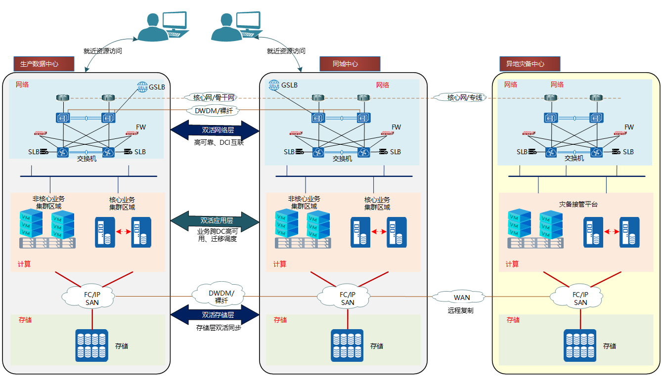 保障业务的连续性,为用户提供就近资源访问及故障后跨数据中心的资源调度